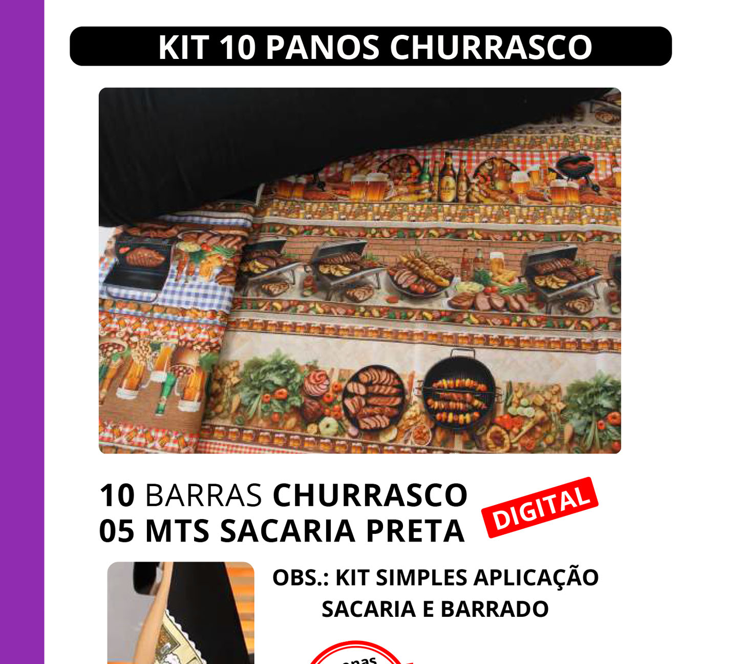O Kit churrasco para produção de 10 Panos de Prato contém: